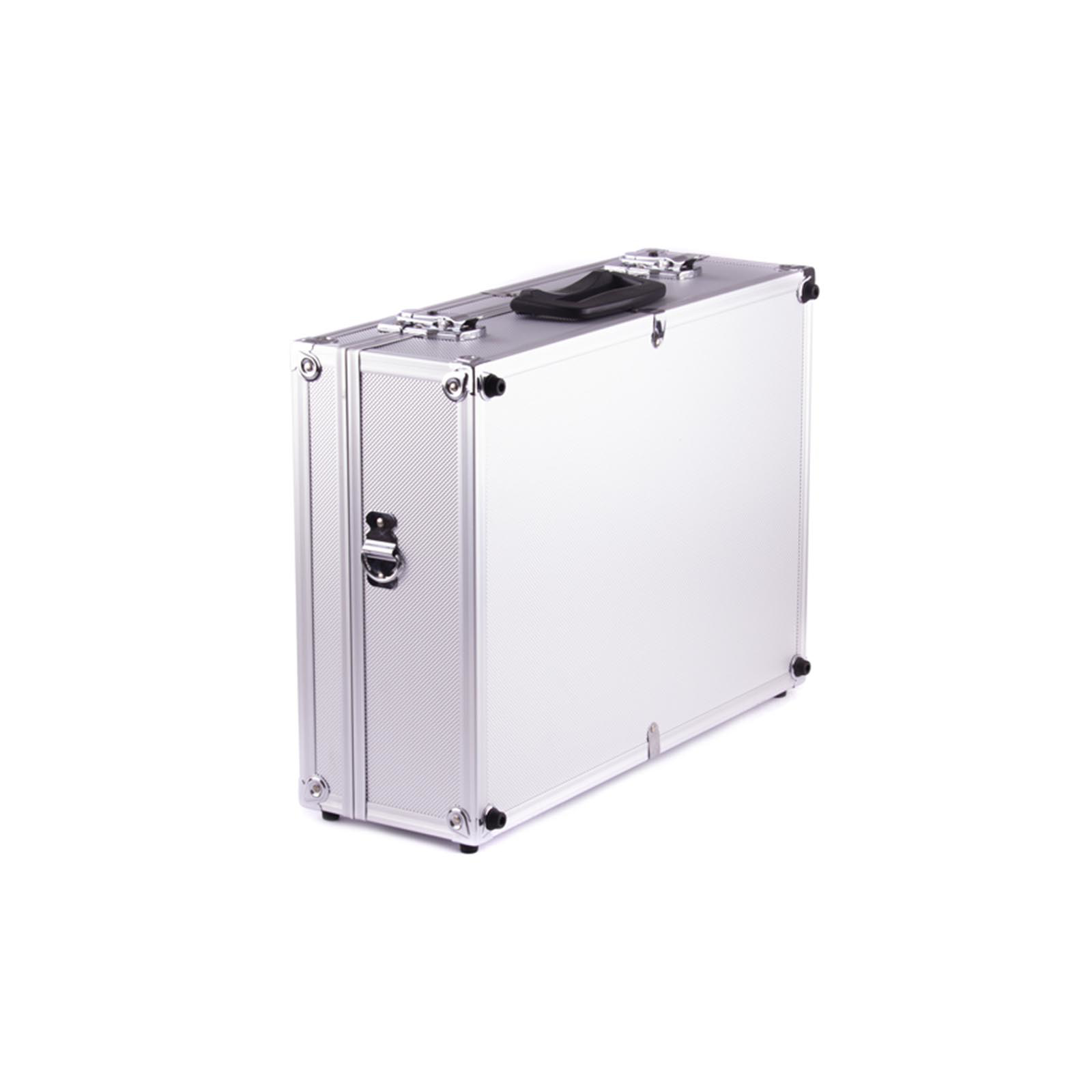 Hliníkový kufr na nářadí má nastavitelné vnitřní přihrádky, které umožňují libovolně přestavět na oddíly. Kufr má oboustranné osazené poutky a kapsy. Popruh přes rameno zajišťuje snadnější přenášení.