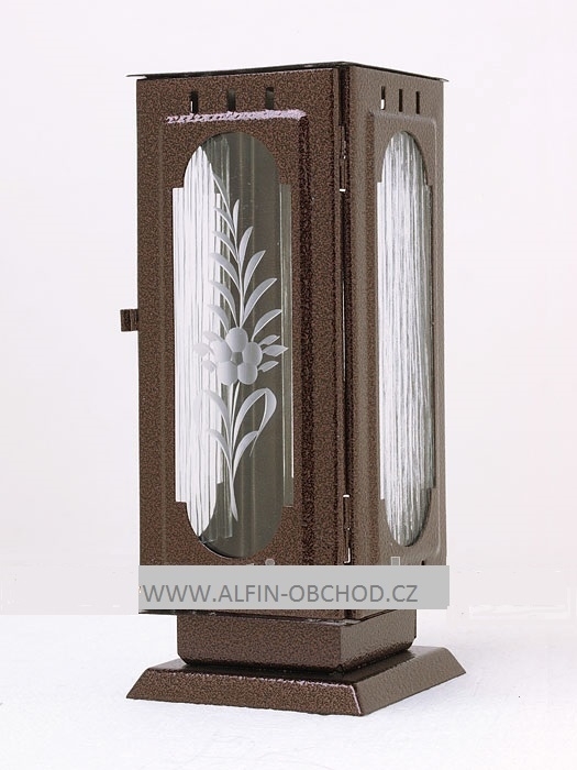 Lampáš na pomník, uchytenie hmoždinkou. Náhrobné svietidlo s ozdobným výstrihom.