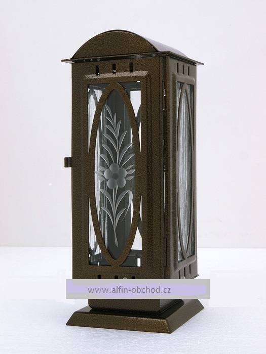 Lampáš na postavenie na pomník, uchytenie hmoždinkou, s oblou strechou, výstrih ovál.