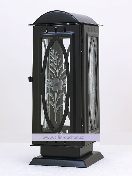 Lampáš na postavenie na pomník, výstrih ovál, uchytenie hmoždinkou, farebné varianty: čierna-straro-zlatá-starostrieborná-staroměď rozmer 100x100x260 mm