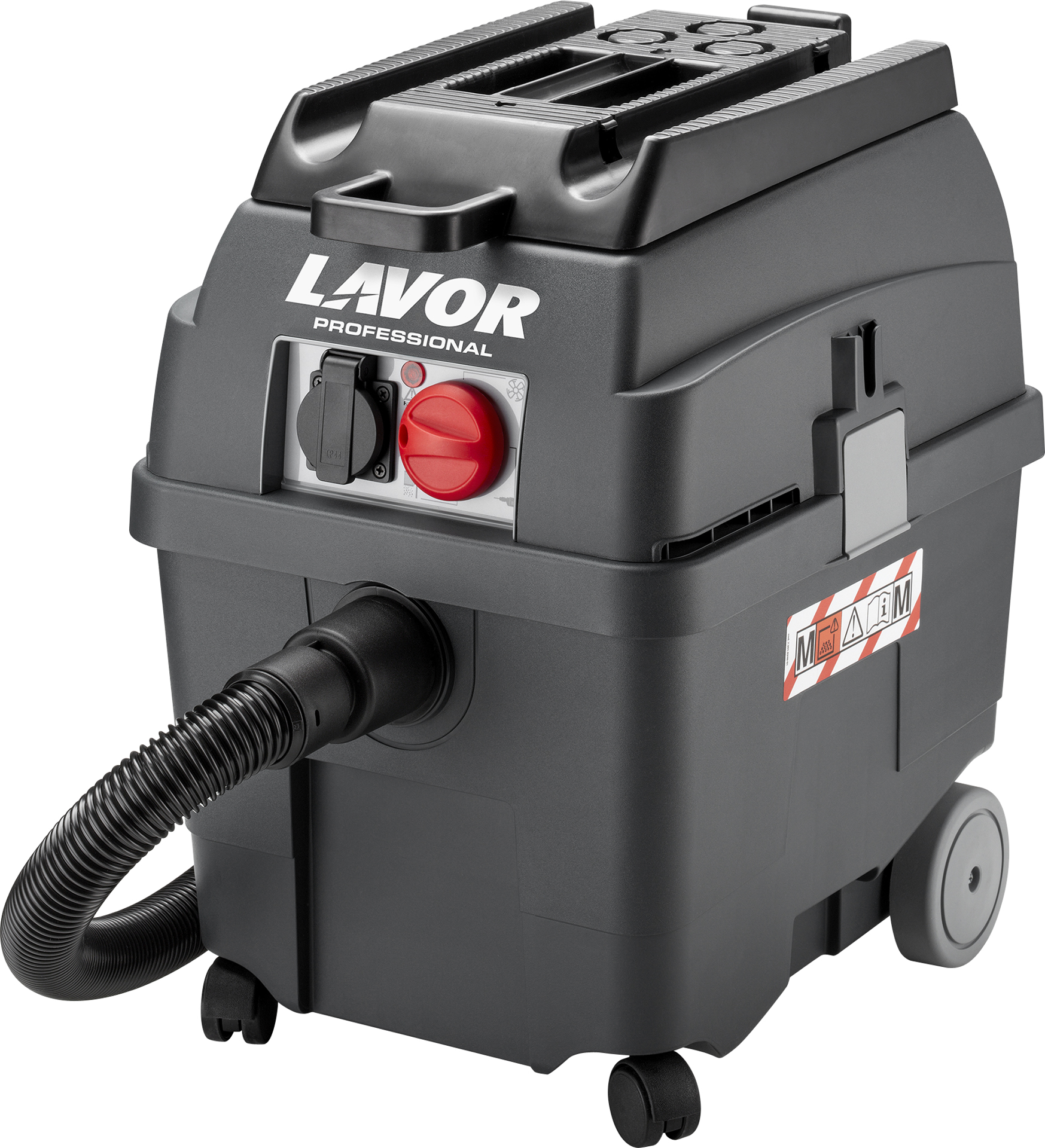 Priemyselný a dielenský vysávač PRO Worker EM - Lavor triedy "M", pre suché a mokré vysávanie, so zásuvkou pre pripojenie náradia, 1 motor, max. 1400 W, nádoba 30 lt, vrátane príslušenstva.