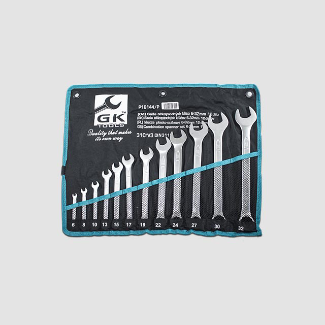 Sada očkoplochých klíčů je uložena v textilním obalu. Klíče jsou z jedné strany ploché otevřené, ze strany druhé je dvanáctihranné očko.Norma -DIN 3113 Materiál- 31CrV4