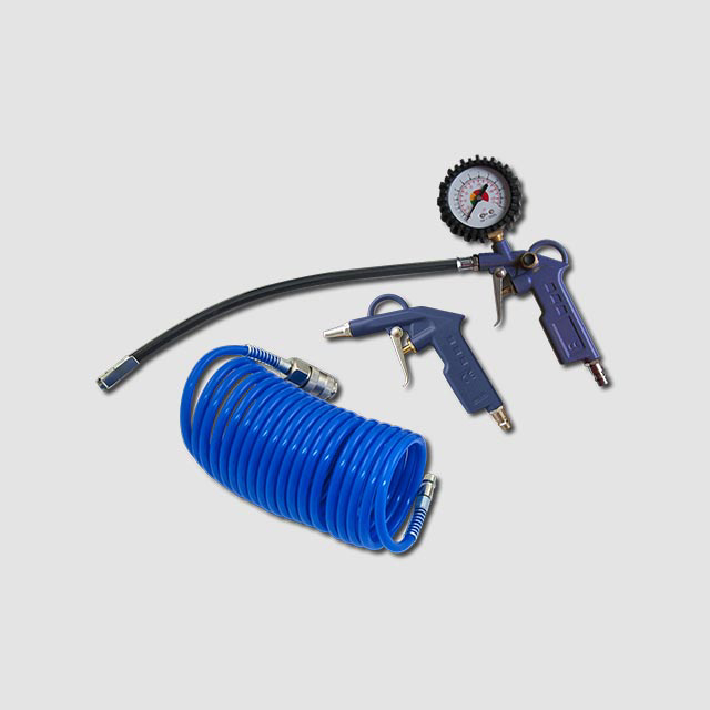 Základní sada pro kompresor k nafukování pneumatik a čistění pomocí ofukovací pistole.